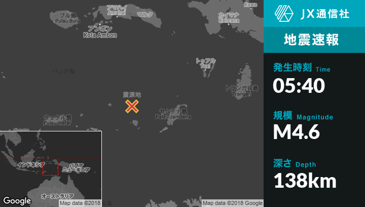 | 震源地 | インドネシアのSaumlakiから西北西215kmの地点 |
