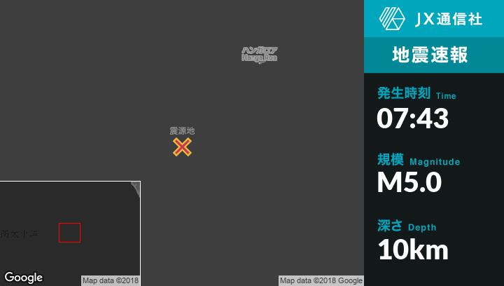 7月26日 07:43頃、チリのHanga Roaから南西342kmの地点でM5.0の地震がありました。