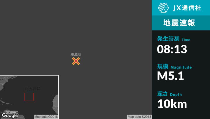 | 震源地 | ポルトガルのSanta Cruz das Floresから南西1952kmの地点 |