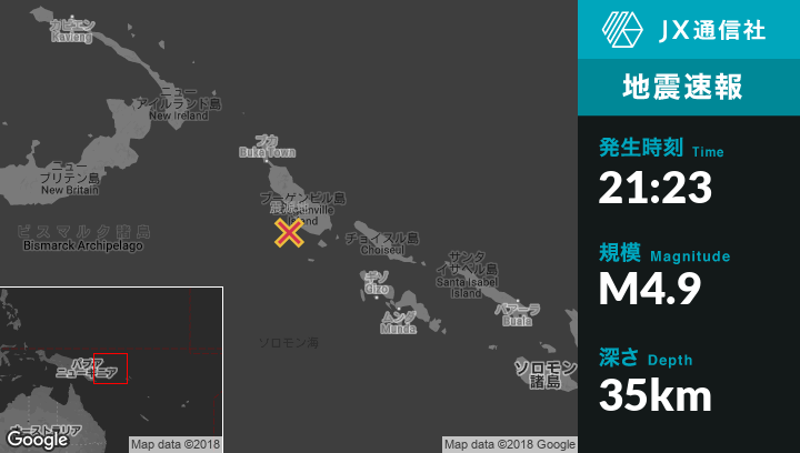 | 震源地 | パプアニューギニアのPangunaから南西61kmの地点 |