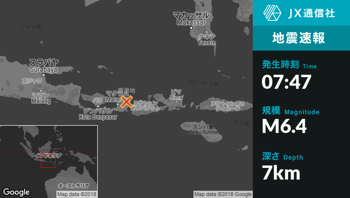| 震源地 | インドネシアのLelongkenから南西1kmの地点 |