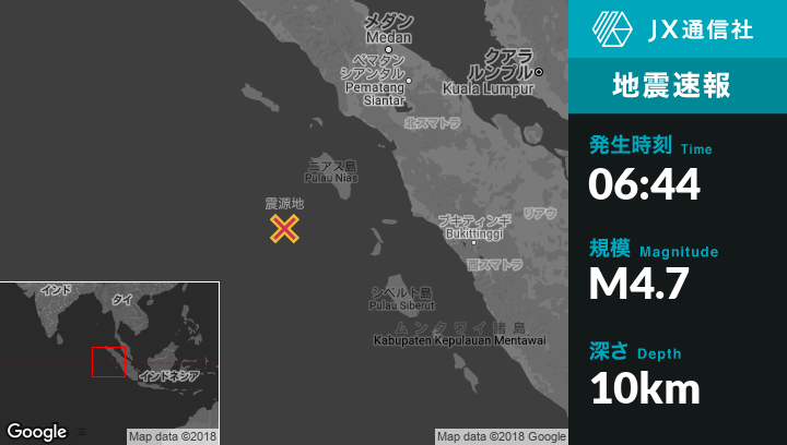 | 震源地 | インドネシアのSinabangから南263kmの地点 |