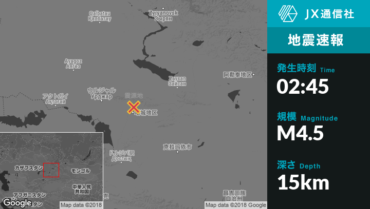 | 震源地 | カザフスタンのUrzharから東105kmの地点 |