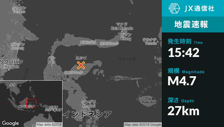 | 震源地 | インドネシアのLuwukから西94kmの地点 |