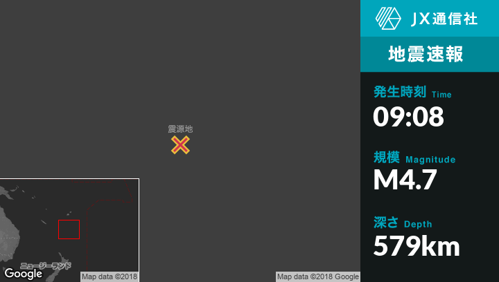 9月17日 09:08頃、ニュージーランドのRaoul Islandから北西561kmの地点でM4.7の地震がありました。