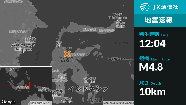 | 震源地 | インドネシアのKasiguncuから北北西18kmの地点 |