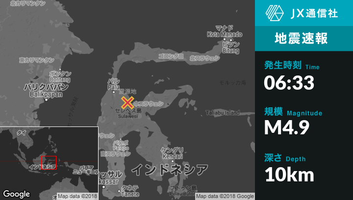 | 震源地 | インドネシアのKasiguncuから北西27kmの地点 |