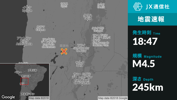 | 震源地 | アルゼンチンのSan Antonio de los Cobresから西北西59kmの地点 |