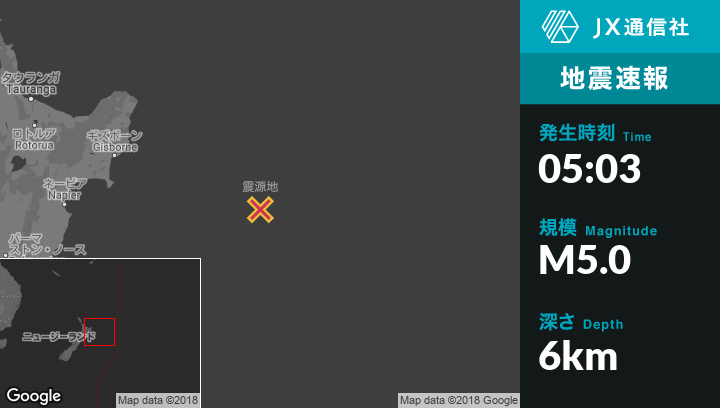 | 震源地 | ニュージーランドのGisborneから東南東291kmの地点 |