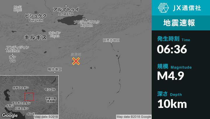 | 震源地 | 中国のArzakから東北東139kmの地点 |