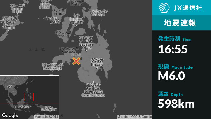 | 震源地 | フィリピンのSapadから南東6kmの地点 |