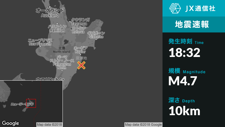| 震源地 | ニュージーランドのHastingsから南南東38kmの地点 |