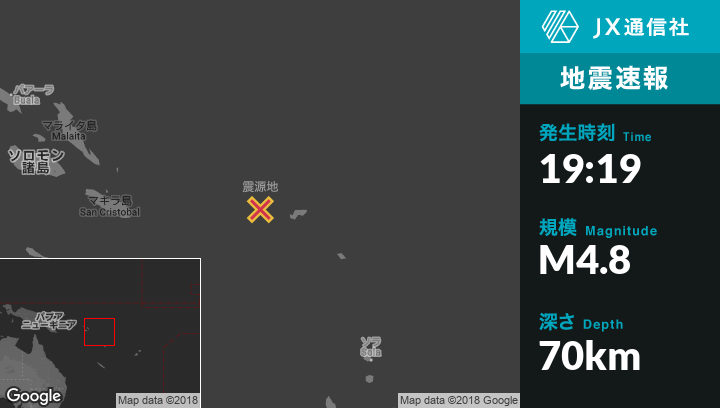 | 震源地 | ソロモン諸島のLataから西北西82kmの地点 |