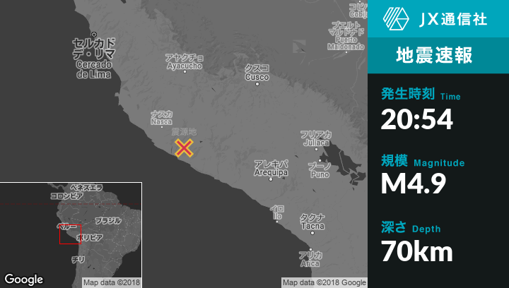 | 震源地 | ペルーのAcariから東北東40kmの地点 |