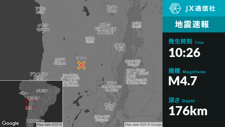 | 震源地 | チリのSan Pedro de Atacamaから北東105kmの地点 |