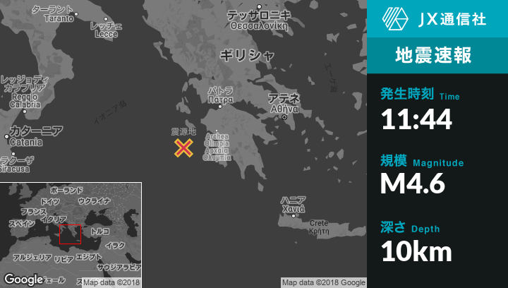 | 震源地 | ギリシャのLithakiaから南南西48kmの地点 |