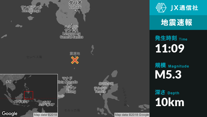 | 震源地 | フィリピンのSaranganiから南212kmの地点 |