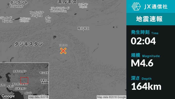 12月12日 02:04頃、タジキスタンのMurghobから東19kmの地点でM4.6の地震がありました。