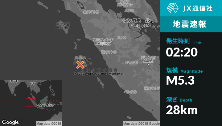 | 震源地 | インドネシアのMuara Siberutから西49kmの地点 |