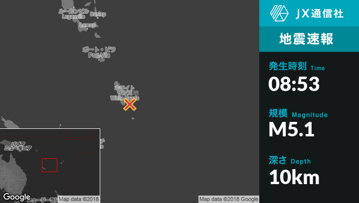 | 震源地 | バヌアツのIsangelから東44kmの地点 |