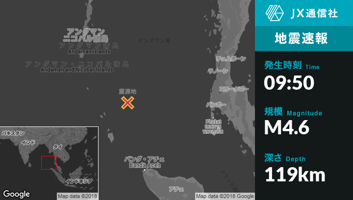 12月13日 09:50頃、インドのMoheanから東北東157kmの地点でM4.6の地震がありました。