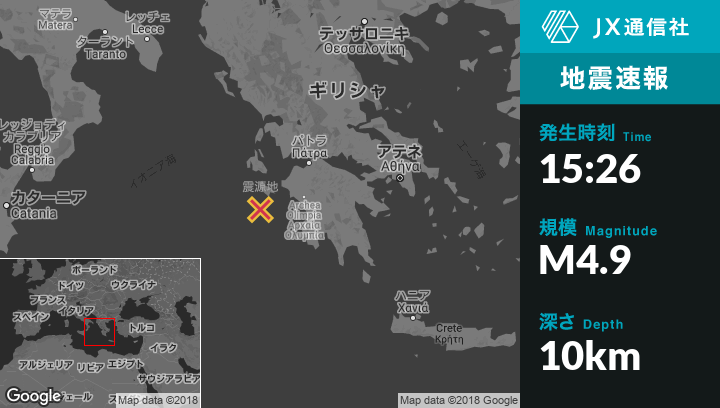 12月13日 15:26頃、ギリシャのLithakiaから南西25kmの地点でM4.9の地震がありました。