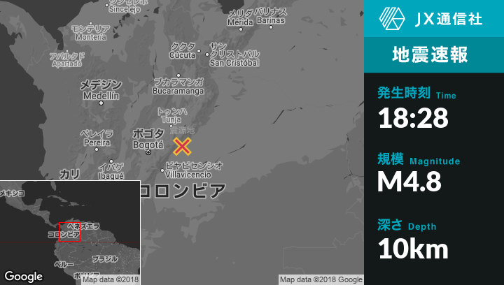 12月13日 18:28頃、コロンビアのPaezから南南東8kmの地点でM4.8の地震がありました。