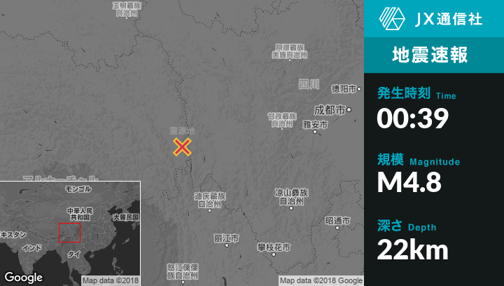 12月14日 00:39頃、中国のGartogから東26kmの地点でM4.8の地震がありました。