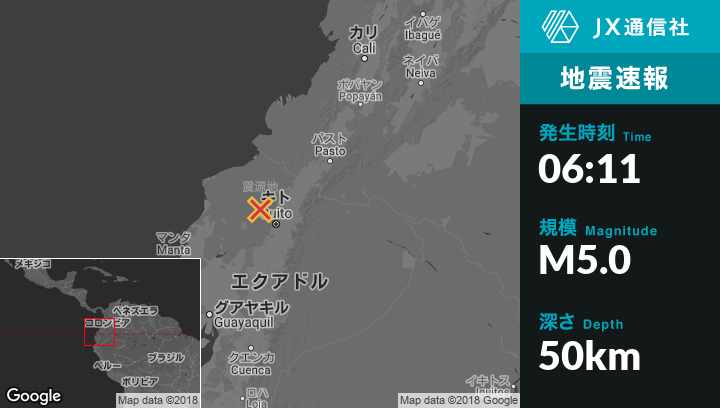 | 震源地 | エクアドルのOtavaloから西60kmの地点 |