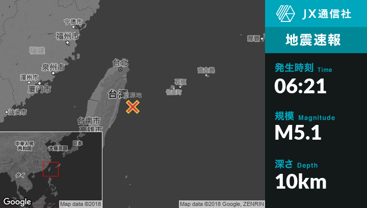 12月16日 06:21頃、台湾のHualianから南東61kmの地点でM5.1の地震がありました。