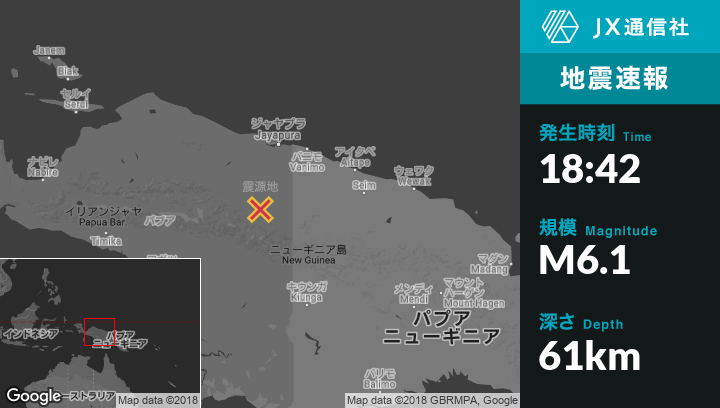 | 震源地 | インドネシアのAbepuraから南南西144kmの地点 |