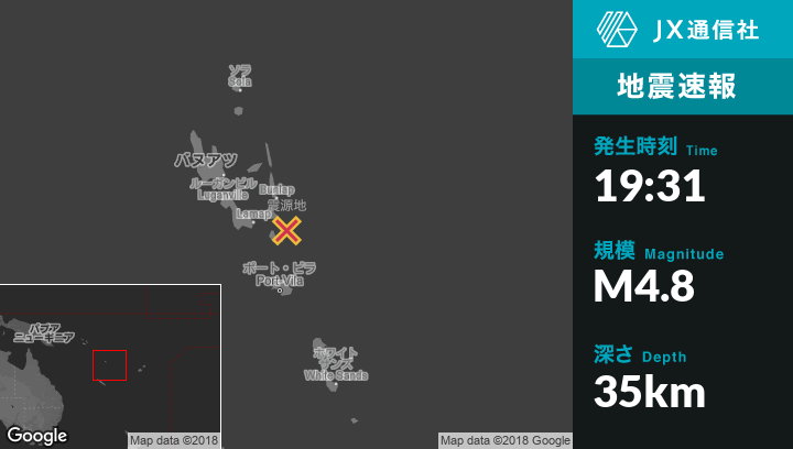 | 震源地 | バヌアツのLakatoroから東南東119kmの地点 |