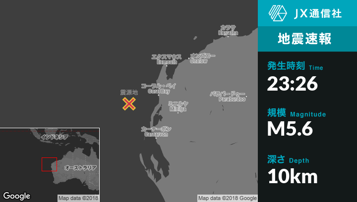 | 震源地 | オーストラリアのCarnarvonから北西203kmの地点 |