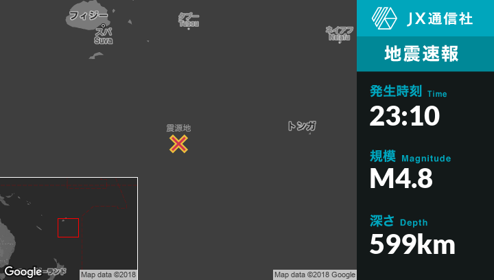 | 震源地 | フィジーのNdoi Islandから南南西113kmの地点 |