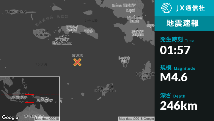 | 震源地 | インドネシアのSaparuaから南南東217kmの地点 |