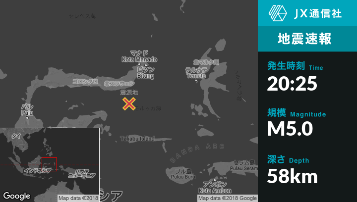 | 震源地 | インドネシアのMolibaguから南東74kmの地点 |
