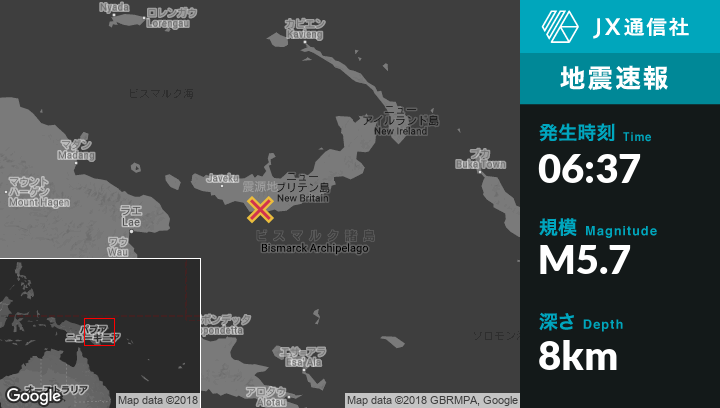 | 震源地 | パプアニューギニアのKandrianから東北東34kmの地点 |