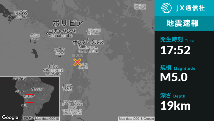 | 震源地 | ボリビアのPadillaから東35kmの地点 |