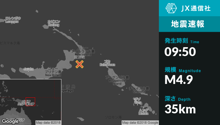 | 震源地 | パプアニューギニアのTaronから南南西81kmの地点 |