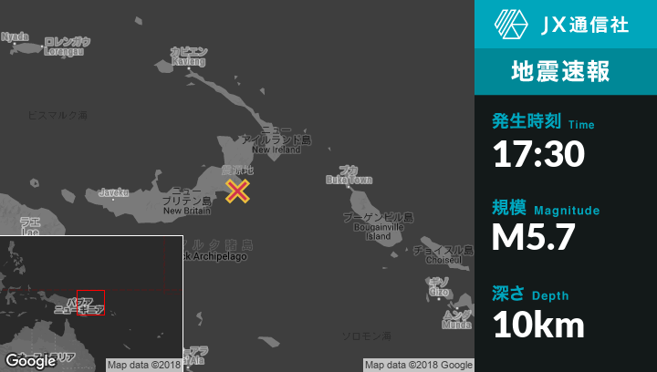 | 震源地 | パプアニューギニアのKokopoから南南西119kmの地点 |