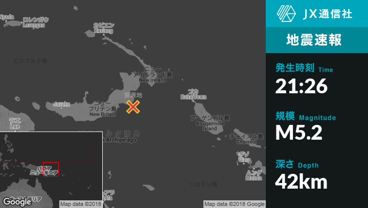 | 震源地 | パプアニューギニアのKokopoから南135kmの地点 |
