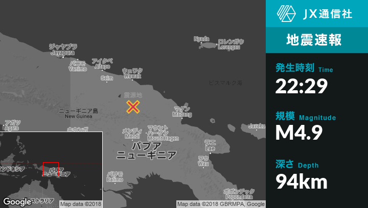 | 震源地 | パプアニューギニアのAngoramから南西74kmの地点 |