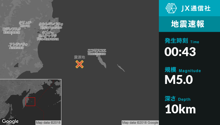 | 震源地 | ロシアのNikol'skoyeから西南西85kmの地点 |