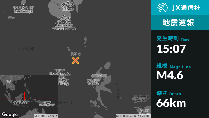 | 震源地 | インドネシアのBitungから北北東180kmの地点 |