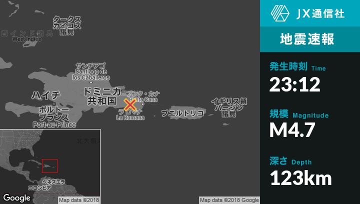 | 震源地 | ドミニカ共和国のGuaymateから北8kmの地点 |