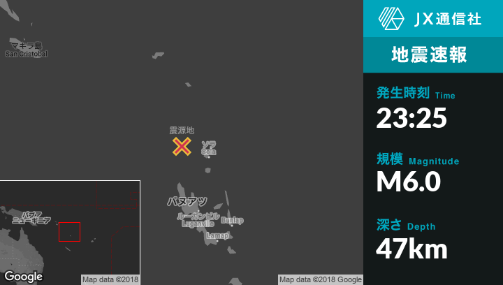 | 震源地 | バヌアツのSolaから西北西105kmの地点 |