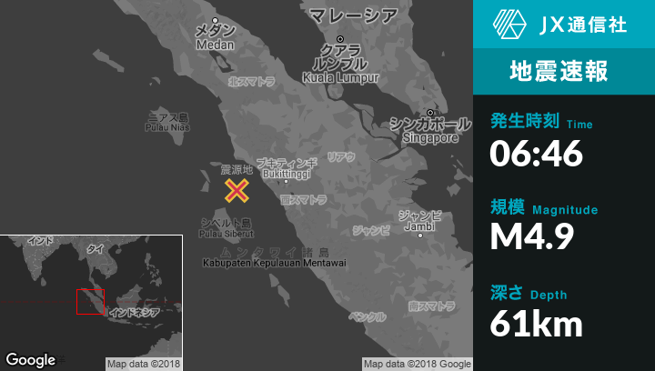 | 震源地 | インドネシアのTikuから西81kmの地点 |