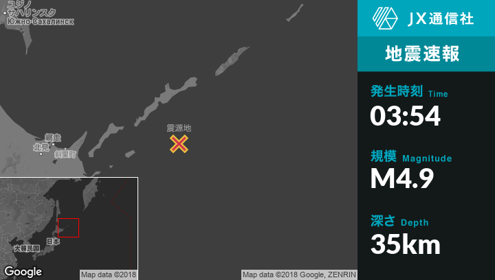 | 震源地 | ロシアのKuril'skから南南東128kmの地点 |