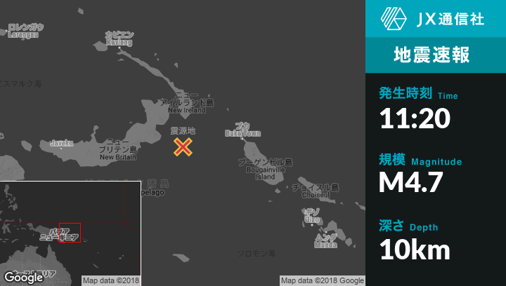 | 震源地 | パプアニューギニアのTaronから南南西123kmの地点 |