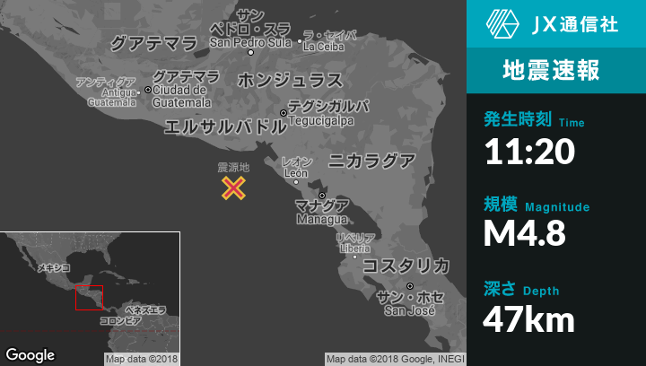 | 震源地 | エルサルバドルのChirilaguaから南南西93kmの地点 |